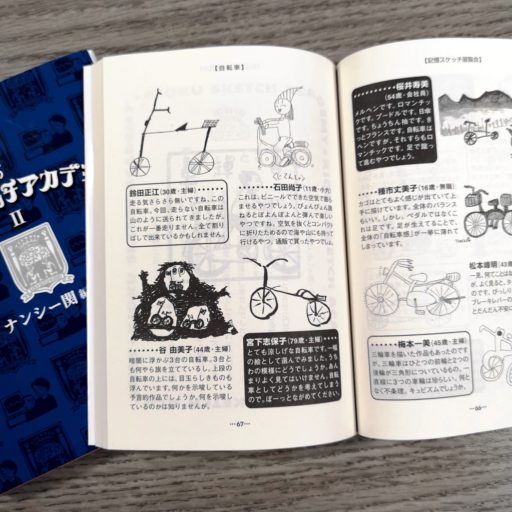なお、記憶によって描かれた絵は、ナンシー関の「ナンシー関の記憶スケッチアカデミー」にもある。これらは雑誌のコラムで募集したものであり、全国から寄せられた多数のスケッチで構成されている。数点収録された自転車には、日本とヨーロッパの感性の違いが浮かび上がる。他にもパンダや大仏、ギターやウルトラマンなどお題は多岐にわたり、絶妙のコメントが楽しい。