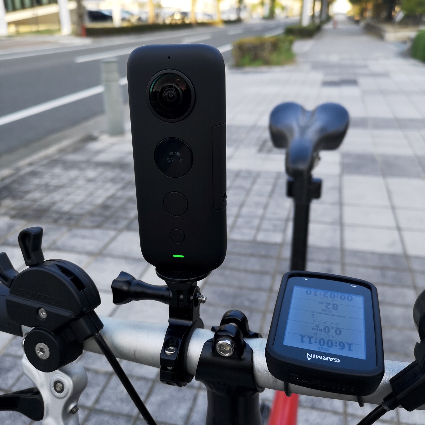 次にカメラをハンドルバーに付けて、タイル敷きの歩道を走行する。これは細かい路面振動に対するスタビライズ能力を確認するためだ。結果的には細かい振動を抑えられておらず、前機種と同程度か劣っているくらいだ。驚異の手ブレ補正とうたうFlowStateだが、路面振動に関しては現在もGoPro Fusionが遥かに優れている。一方、ハンドルバーでは頭の動きはないので、視点同期オンで常に進行方向を向く。
