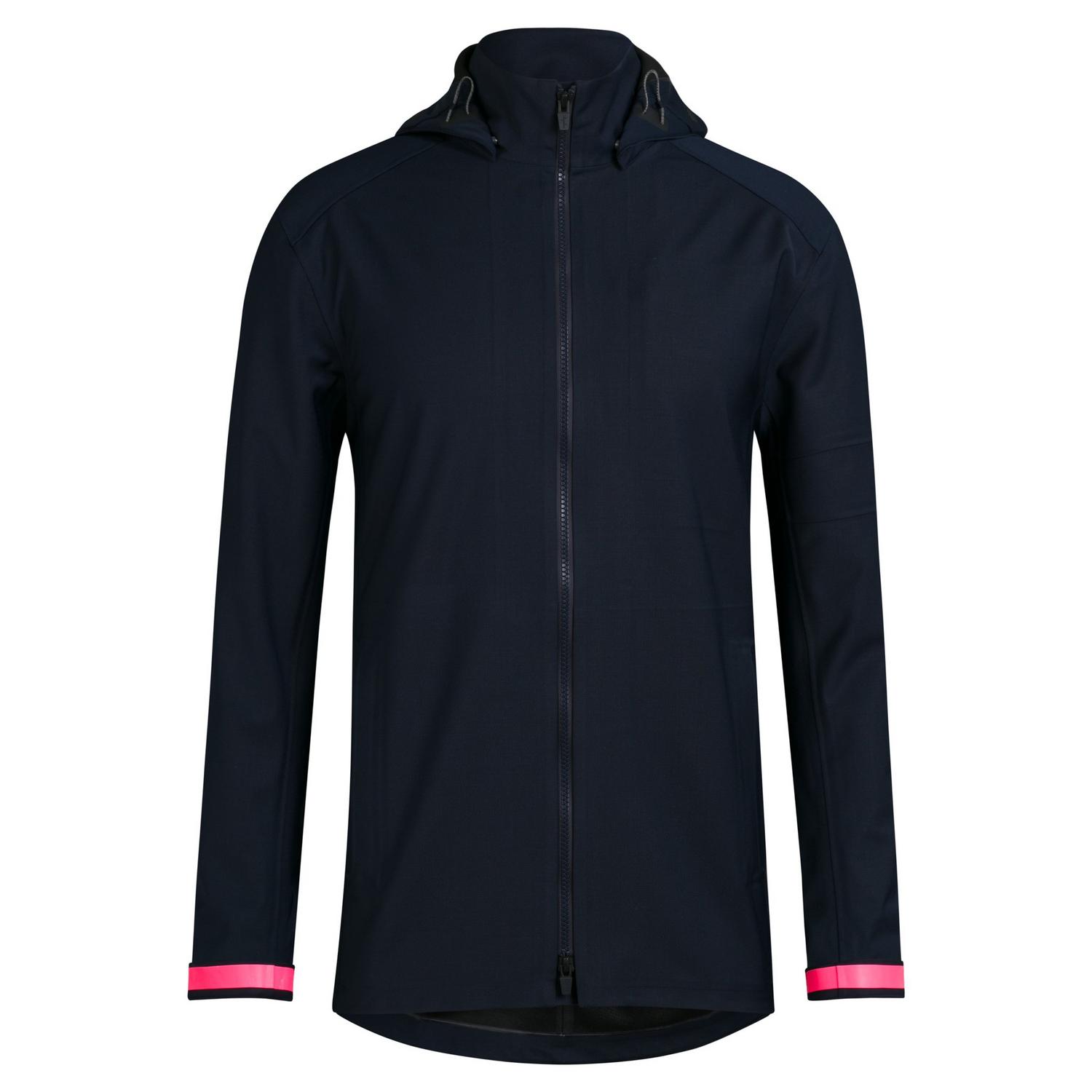 Hooded Wool Jacketは、ウールと聞いて連想するような柔らかい厚手の生地ではなく、堅く織られた防水性のある生地でできている。自転車用ジャケットとしては珍しく着丈が長いので、セミロングのコートとしても使える。他のジャケットもそうだが、ジッパーが下からも開くので、自転車にも乗りやすい。全体的にソリッドでクラシカルな雰囲気に反して、袖口のドットとピンクの意匠が鮮烈だ。