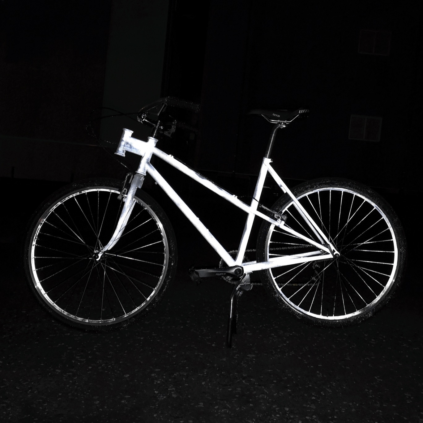 ともあれ、再帰性反射の塗装をした自転車の安全性は高い。写真のようにスマートフォンのフラッシュ撮影でも効果が確認できる。これが自動車のライトとなると、かなり強烈に反射する。しかも陰りのない一様で平坦な反射面になるのも面白い。昼間にはザラザラとして細かい光が宿っているような質感も楽しめる。ただ、ラッカーで保護しているものの、塗装が剥がれ易い。作業に問題があったかもしれない。