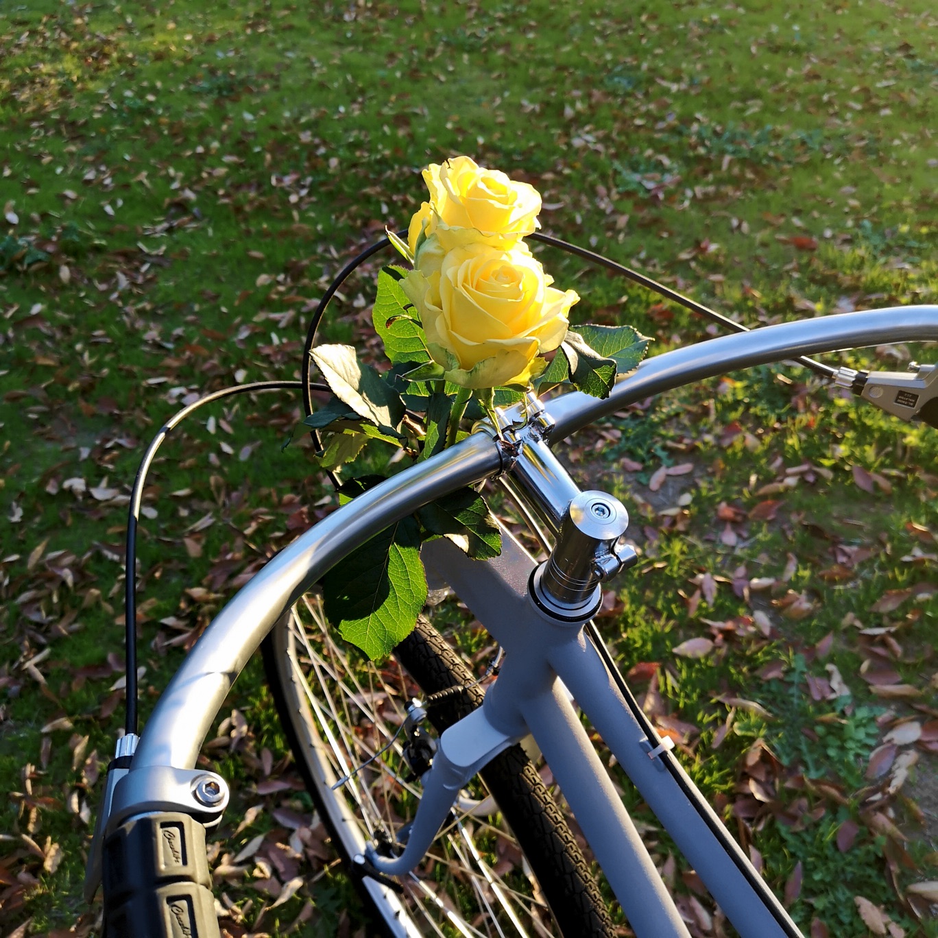 ところで「逆さま自転車」ではあるが、今回は普通のハンドルとして組み立てた。これは普通の自転車としての乗り心地を試したかったからだ。ミキスト・フレームに大きめのハンドルと太めのタイヤ。シングル・スピードでのんびり走るのがシャレオツで楽しい。余分のヘッドが前に飛び出ているのが異様だが、ここには花を飾ろう。もちろん、一手間かければ「逆さま自転車」に戻すこともできる。