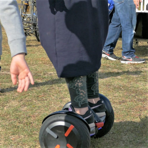 Ninebot mini Proは、一般的にセグウェイという名称で知られる、自立バランス車輪である。これを自転車と呼ぶかどうかは論じるべきではないと判断し、ここでは他の試乗車と比較しながら、起きた現象に焦点を当てたい。この試乗車の特徴は「人力以外の動力」で動くことと、バランスを維持する機能を、部分的ではあるが「機械が自動で行う」ことである。体験イベントでは、多くの来場者たちが体験を求めた、人気のある試乗車だったが、なぜ人気があったのかを分析することは難しい。なぜなら、技術的に最新の物を使用しており、そもそも話題性があったからである。ただ、イベント会場の地面が芝生であり、やや傾斜があったことから、この試乗車での走行が楽であったことは、容易に観察できた。