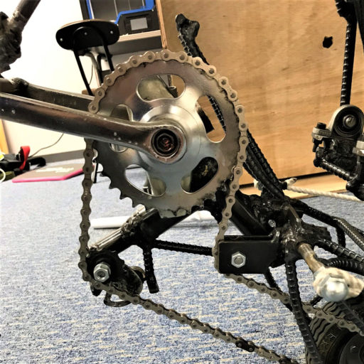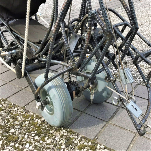 本作品は、駆動する原理を体験者が身体を使い確認する時間が、ほかの試乗車に比べて長かった。本作品を接すると、まず、普通のペダルらしい部品が見えない。よって、体験者は、乗車した後もどのように駆動させたら良いか、長い時間を掛けて確認していた。普段自転車に乗るときは、最初、横に立ち、手でハンドルを抑え車体の安定を確保する。そこから、足をペダルに乗せる。すると、この時点から、バランスが崩れる可能性が生まれる。つまりペダルは、身体が当たる自転車の部品の中で、体重をもって確認する、ほぼ最初の機械要素なのだ。体験イベントの他の試乗車も、普段は見かけない特殊な物だったが、ペダルが認識できると、体験者はそこを基準にし、すぐ体重を乗せることが見られた。つまり、ペダルを踏むときの身体感覚は、機械を動かすという現象と、密接に繋がっているといえる。
