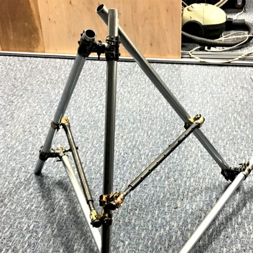 そういった微調整の難しさはあったが、このシステムは同じ大きさのクランプで構成されていたので、パイプ同士の間隔を均一になりやすく、部品が軸の上に揃うようになった。その結果、少ない種類の部品で、体重を支えられる構造を作ることが出来た。