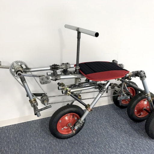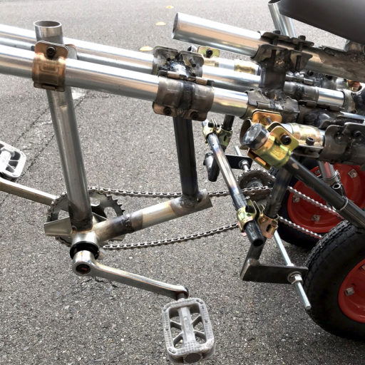 この作品の制作で挑戦したことは、いかにして、細かいパーツまで「組み立て」ができるようにするか、であった。特に、ペダルや、ボトム・ブラケット(ペダルを回すクランク構造を構成するパーツ)そして、チェーンで構成されるような、駆動部を組み立て式にするのは難しく、チェーンが軸から少しでもずれると、外れてしまうことがあった。