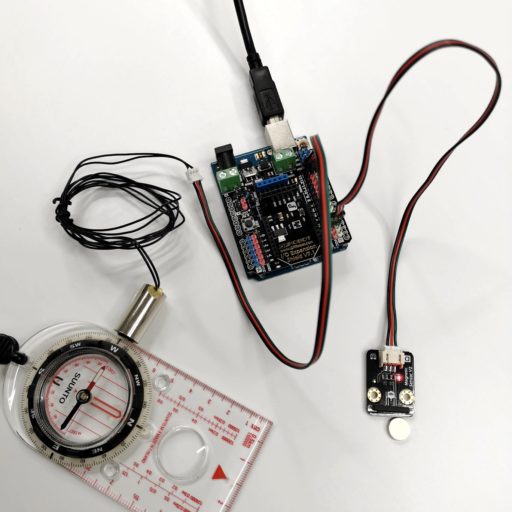 そこで、この手の電子工作の定番Arduinoを引っ張り出す。ただし、スターター・キットには磁気センサーも電磁石も付属していない。そこで、お手軽な電子工作キットGravityを漁るとDigital Magnetic Sensorがあった。GravityをArduinoで使うには拡張シールドも必要。電磁石はキット系には見当たらなかったので、Arduinoで扱いやすい5Vで動作する単品を購入した。これで役者が揃った。
