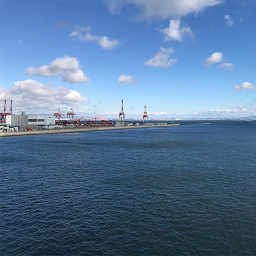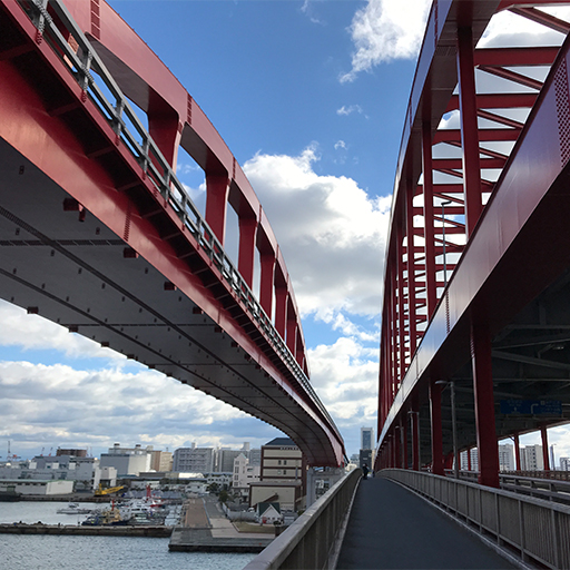 神戸に対するイメージは様々だが、私の神戸のイメージは、この巨大な鉄でできた無数のキリンたちである。本物のキリンではなく、港の荷物を運ぶための大型のクレーン「ガントリークレーン」のことである。ガントリークレーン群を見ると地元へ帰ってきたという実感が湧いてくる。ポートアイランドをさらに南へ進み、神戸空港まで走った。