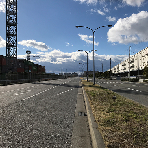 その他にもポートアイランドの倉庫街は交通量も少なく、道幅も広く、直線である。もしかすると働く人たちは夜に多いのかもしれない。倉庫街や、昼夜で働く人が入れ替わるような場所は、都会のアーバンなライドを支えるスポットになり得るのかもしれない。