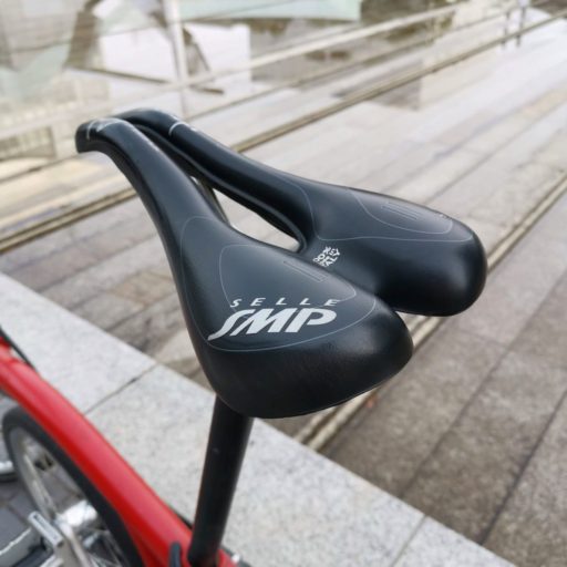 モッコリがどうしても嫌なら、クッション性の高いサドルを使う手もある。ビブ・ショーツのパッドをサドル側に移すわけだ。この手の用途には、筆者はゲル(ジェル)がたっぷり詰まったSella SMPのTRKゲルを使っている。肉厚のパッドと大胆に湾曲した形状が、体重を広い面積で受け止める。柔らか過ぎることもなく、快適にライドができる。しかし、500g近い重量が悩ましいところ。