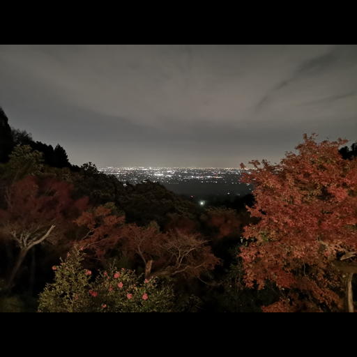 肉眼ではおぼろげにしか見えない暗い夜の山を撮影。夜景モードがないiPhoneでは映らない暗部まで、MateやPixelは描き出している。夜景モードでは、数秒かけて光を集めて画像合成する。