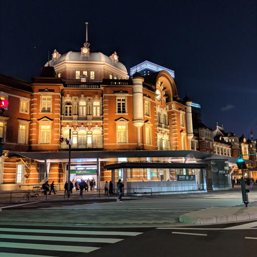 夜8時頃に東京駅丸の内北口駅舎を撮影。MateやPixelは自慢の夜景モードを用いた。iPhoneは夜景モードがなく、一瞬でシャッターを切るにもかかわらず、遜色ない描写をしている。