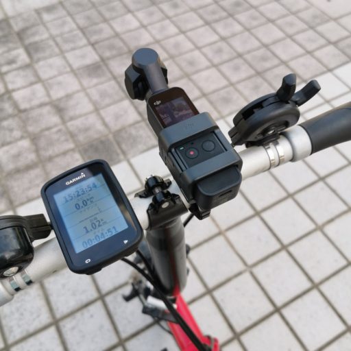 このようにOSMO Pocketのスタビライズ能力は凡庸だが、自転車カメラとして捨てがたい魅力がある。それはハンドルに取り付けた場合の操作性の良さだ。GoPro HERO7などでは画面が見えず、撮影状況を把握できないのがストレスになる。これに対して、OSMO Pocketは画面が上を向くように取り付けられるので、安心して撮影ができる。タッチパネルやボタンも上面になるので、操作もしやすい。