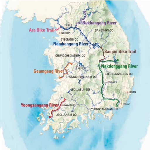 このコースはアップダウンがありつつも全体に平坦な道で走りやすい。特に前半は人家を離れて自然を満喫できるが、それだけに飲食や休憩は計画的に行う必要がある。もっとも、標識や休憩所は要所要所に設けられており、絶景の展望台やサイクリスト向けのカフェで寛げる。ソウル市内と同じくマウンテン・バイク、黒マスク、派手なウェア、歌謡曲が多いのはお国柄らしい。