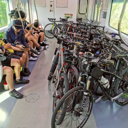 今回はチュンチョンまで鉄道で出かけ、ソウルに向かってライドすることにした。そこで、地下鉄に自転車を載せて郊外へ向かう。途中で乗り換えるKORAIL(韓国鉄道公社)でも、先頭車両と最後尾車両がサイクル・トレインになっている。しかも、専用スペースが設けられ、ぎっしりと自転車が集結。サイクル・トレインは休日のみの運用で、待ちわびた人々の活気で満ち溢れている。