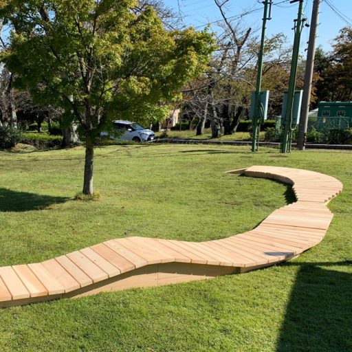 まず「パラメタ・テラス」では、昨年の養老サイクル・ステーションの発展として、今回は芝生広場の東屋にサイクル・ボックスを設置する。休憩やモバイル機器の充電から自転車整備まで対応。そして、東屋の周辺には木製トラックを設置。自転車で走るだけでなく、歩いたり寝転がったりできる。ユニット構造になっているので、組み換えることができるフレキシブルなコースだ。