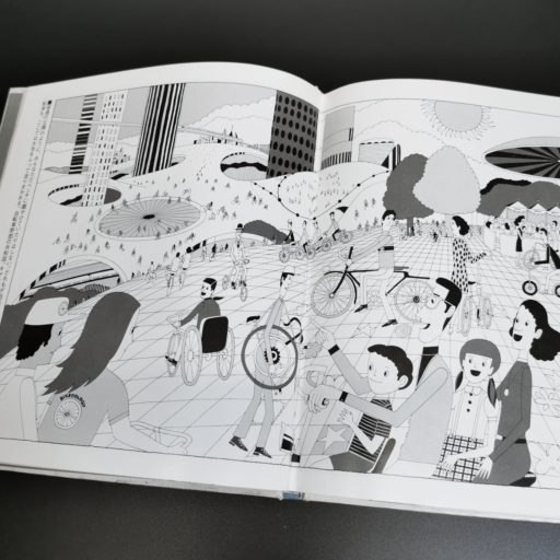 星新一の小説の挿画や装丁で有名なイラストレーター真鍋博は、1973年に「自転車讃歌」なる書籍を刊行している。重化学工業を中心とした高度経済成長が限界を迎え、人口集中や公害による環境破壊が深刻化した時代にあって、彼のイラストレーションは常にシンプルで軽やかであり、明るくポップな世界を描いていた。本書でも同じスタイルで、自転車と社会の来るべき姿が提案される。