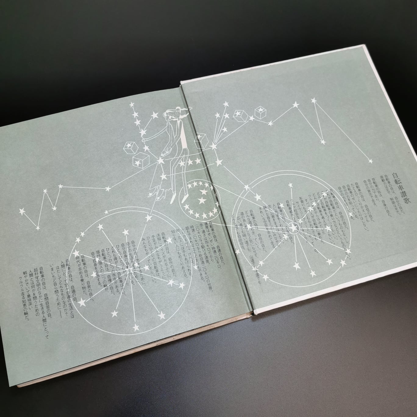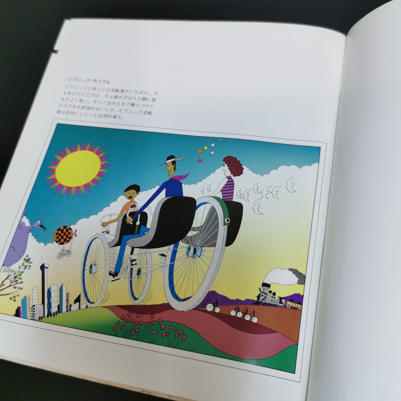 星新一の小説の挿画や装丁で有名なイラストレーター真鍋博は、1973年に「自転車讃歌」なる書籍を刊行している。重化学工業を中心とした高度経済成長が限界を迎え、人口集中や公害による環境破壊が深刻化した時代にあって、彼のイラストレーションは常にシンプルで軽やかであり、明るくポップな世界を描いていた。本書でも同じスタイルで、自転車と社会の来るべき姿が提案される。