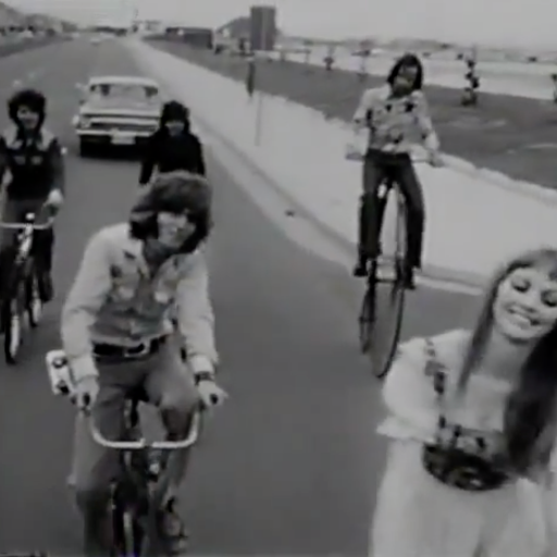 彼らだけでなく、ローラー・スケータやロード・バイク集団も道路の真ん中を我が物顏に走っている。後続の自動車は自転車を避けて走るのだから、随分とマナーが良い。なぜか車両運搬トラックの上で空漕ぎする不思議なシーンも挟まれる。そして最後にタンデム自転車の後ろに女性が乗っていることに気づくだろう。プロットもトリックもない安直なハッピー・エンドらしい。