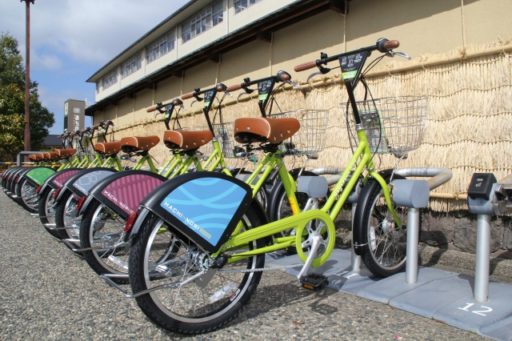 現在、ポートは無人18ヵ所から3カ所増加、事務局でも扱う。自転車155台。料金は安い。(1日200円・1カ月1.000円、30分まで無料・以降30分毎200円)