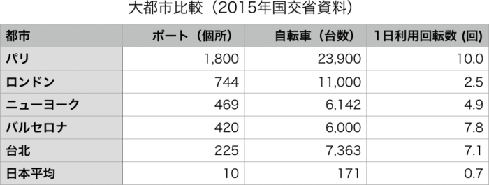 世界のシェア自転車は、観光利用を含めて、大都市の公共交通と定義付けられている。そのため規模が桁外れに大きい。