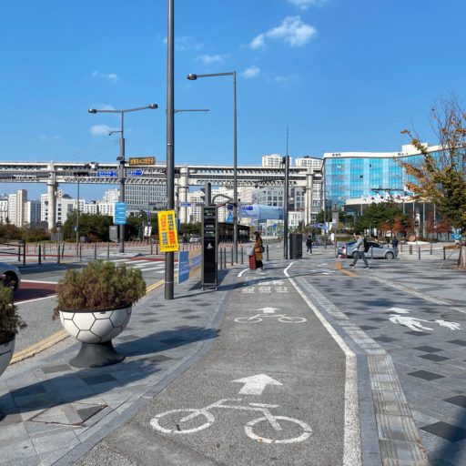 ただし、近隣の都市と都市を結ぶ高速自転車道は、今後ますます重要になるに違いない。それは自動車による交通渋滞や環境破壊を避けながら、社会の流動性を高めることができるからだ。そこで比較的古くからの大都市であるテジョンと政治的な新興都市セジョンを結ぶために、自動車道の中央を自転車道が貫く象徴的な構造が与えられたと考えると合点がいく。