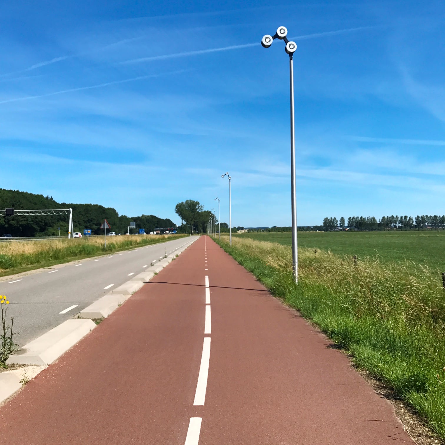 自転車と自然エネルギーとの関係に興味を持って調べていたところ、不思議な動画を目にした。それは緩やかにカーブを描きながら田園地帯を抜ける片道4車線(往復8車線)の広々とした道路で、中央分離帯に無数のソーラー・パネルが連なり続いている。しかも、パネルの下は自転車道路であると言う。想像を絶する非現実的な光景に、動画はCGによるジョークだと思ってしまった。