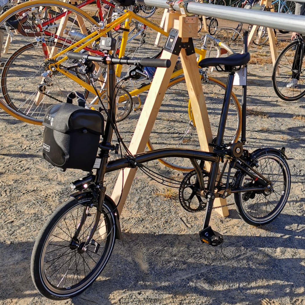 自転車もシャープなエアロ・ロードやマッチョなマウンテン・バイクでは浮いてしまいそう。ドンピシャはオーディナリーやセーフティだろうか、これまたビンテージな自転車は持っていない。そこで現代的ではあるが、大英帝国の自転車としてBromptonに乗ることにした。しかも所有する赤黒ポップな旧型ではなく、知人から借り受けたRAWカラー(無塗装クリア仕上げ)の最新モデルだ。