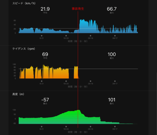2019年末に和歌山県内の国道42号線をロード・バイクで走行していたところ、由良トンネルの出口近くで後ろから来た軽トラックに追突され、転倒して負傷した。すぐさま救急車が駆けつけ、近くの病院に搬送されて入院。筆者はこの間の記憶がないものの、自転車の前部に取り付けたGoPro HERO8でタイムラプス撮影した映像が残っている。これは10倍速、つまり0.33秒ごとの撮影であった。