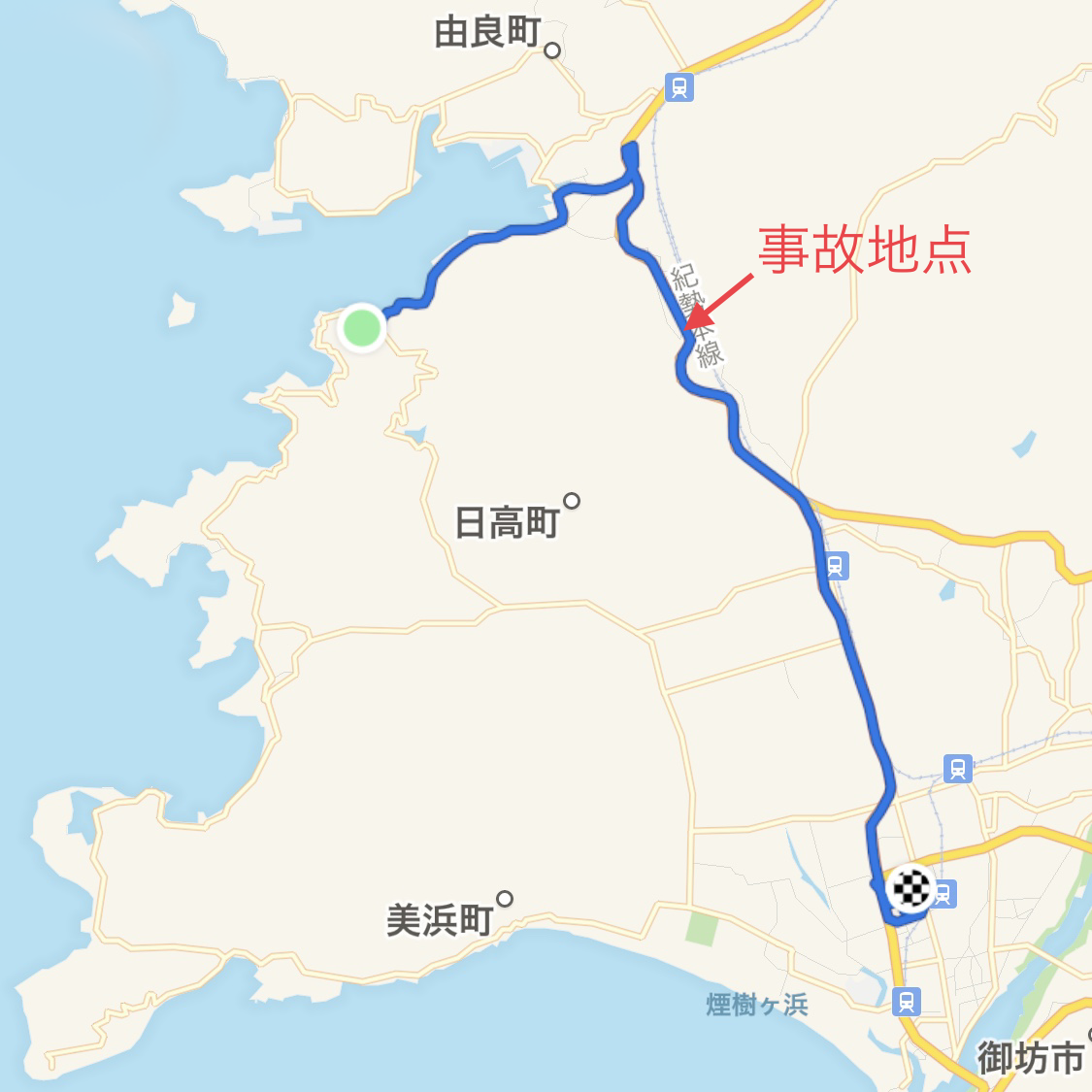 【追記】本件を所管する御坊警察署の事情聴取を受けた。その際に示された実況見分調書によると、軽トラック運転手はトンネルに入って間もなく、昼食のことを考えながら財布の中身を調べて、よそ見運転をしていたと供述している。後日、筆者が面談した際にはそのような状況を話さずに、後続の車に気を取られていたと明らかに異なる説明をしている。また、事故発生場所はトンネル出口から80メートルほど手前であり、自転車は車道外側線(白線)の内側に倒れ込み、身体はさらに内側に投げ出されていた。由良トンネルでの交通事故は比較的少なく、危険だとは見なされていないとのこと。これらの見聞に従って本文を一部修正した。(2020年2月12日)