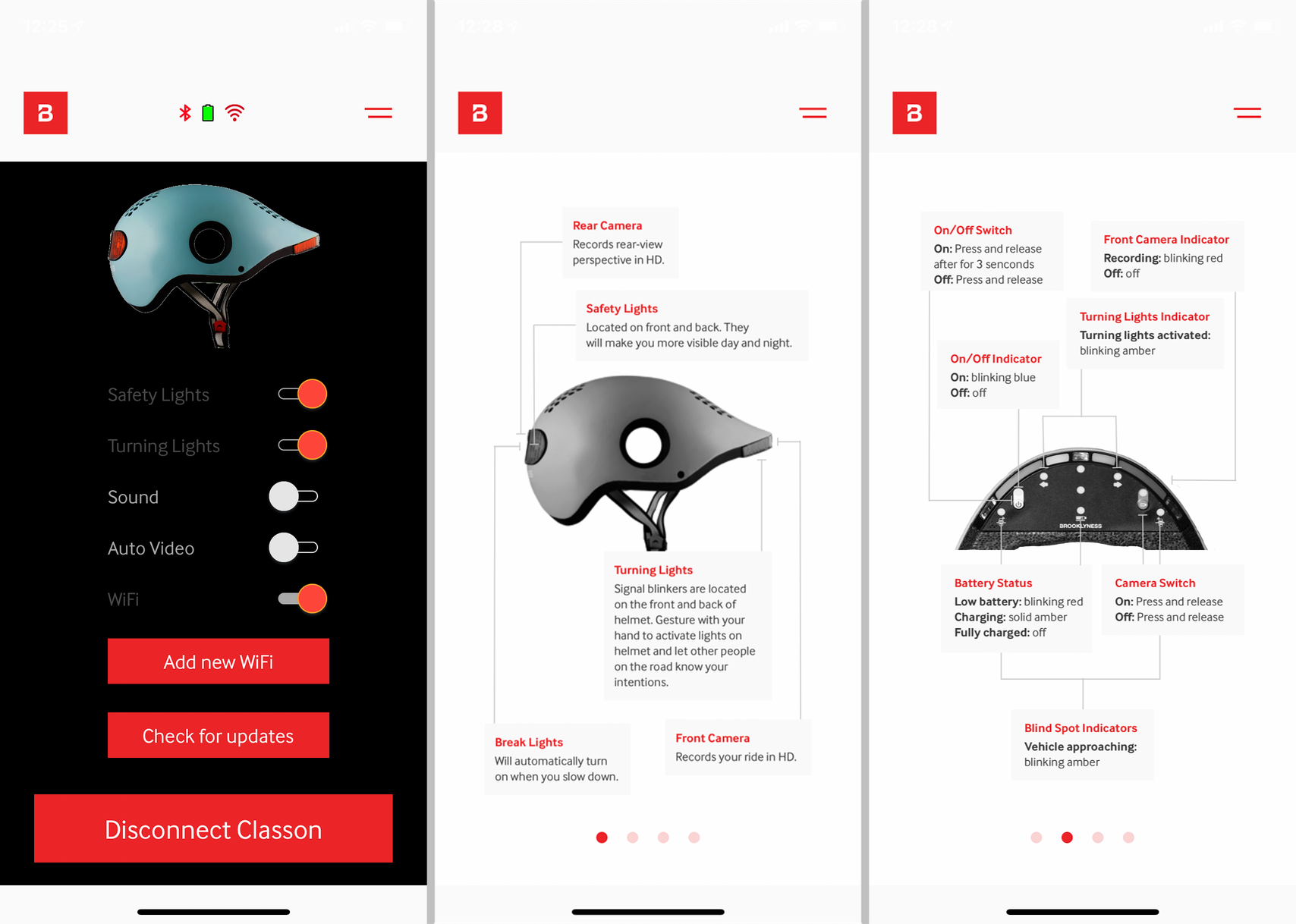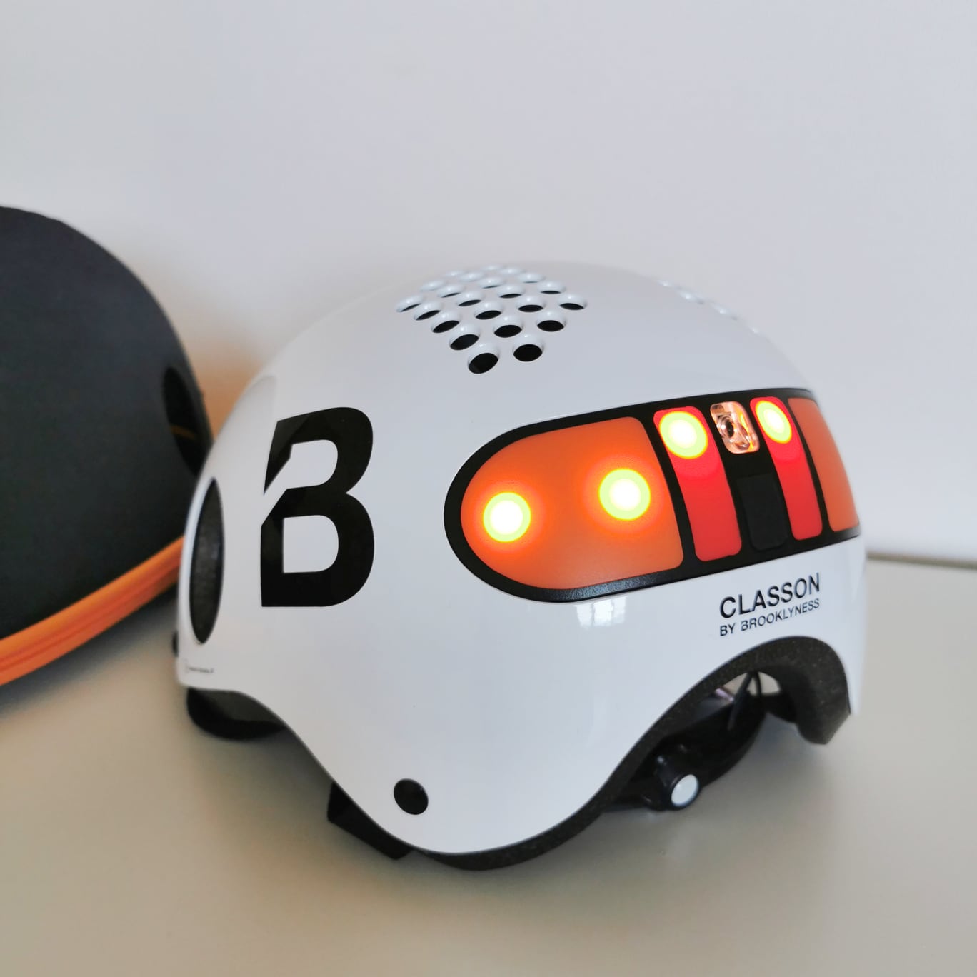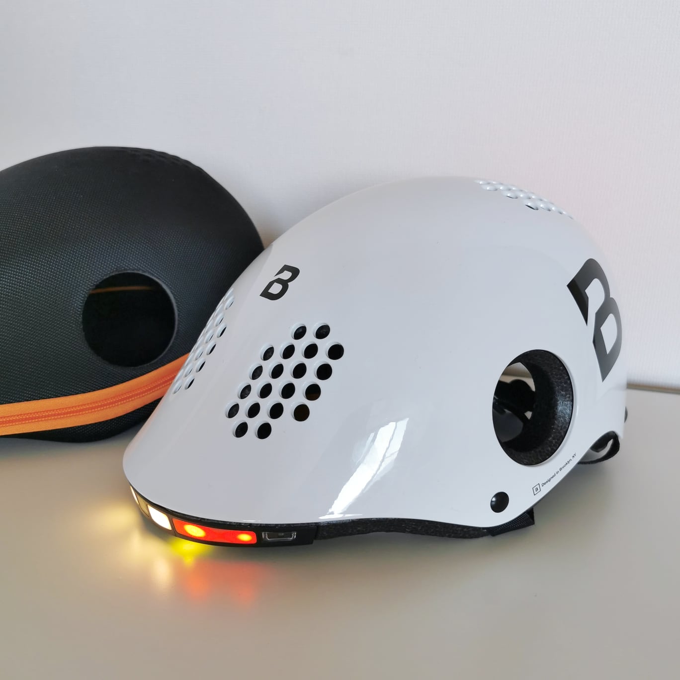 Turning Lights(方向指示ライト)ヘルメットの前後に備わるオレンジ色の左右ライトで、自転車が曲がる方向を示す。身振りで操作するユニークな方式で、ボタン等を用いない。