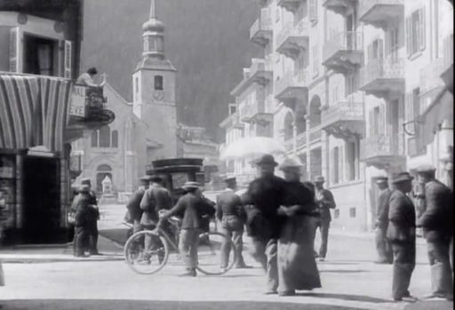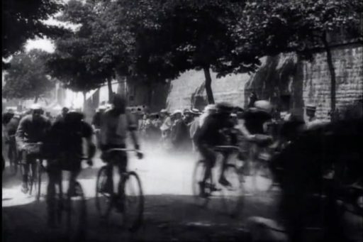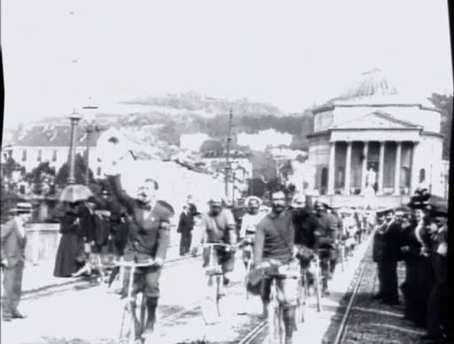 他にもリュミエール兄弟の映画には数多く自転車が登場する。しかも特異な存在ではなく、街に溶け込み(1209)、曲乗り(17)や雪合戦(101)も行われる。一方、レース(33)やパレード(1094)が開催され、カーニバルの巨大な山車(151)など、華やかなイベントも多かったようだ。数は少ないが女性が自転車に乗る姿(247)もある。いずれもすべてセーフティ型だ。(数字は作品番号)