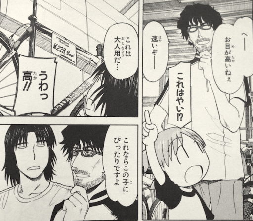 第6巻で、よつばは近所の坂田自転車店にとーちゃんと自転車を買いに行く。