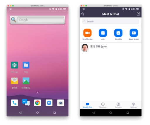 Nreal LightのOSはAndroidなので、Macなどに接続してscncpyを用いれば、ホーム画面が現れて各種操作が可能になる。Zoomのapkファイルをインストールすれば、Zoomが起動する。しかし、カメラ等が認識されないのか、ミーティングの開始や参加はできなかった。AR空間からAndroidアプリを起動する方法もない。これはNebulaが提供されるのを待つしかないようだ。