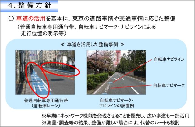 ともあれ、白線やマークによる自転車レーンは役に立たないどころか、危険極まりない。だから、縁石や柵によって車道から物理的に分離した自転車道が望まれる。世界的な潮流としても、自転車レーンではなく自動車道の整備が進んでいる。新型コロナウイルス禍でも即席の自転車レーンが作られているが、これも三角コーンなどを用いて簡単であっても物理的な障壁を設けている。
