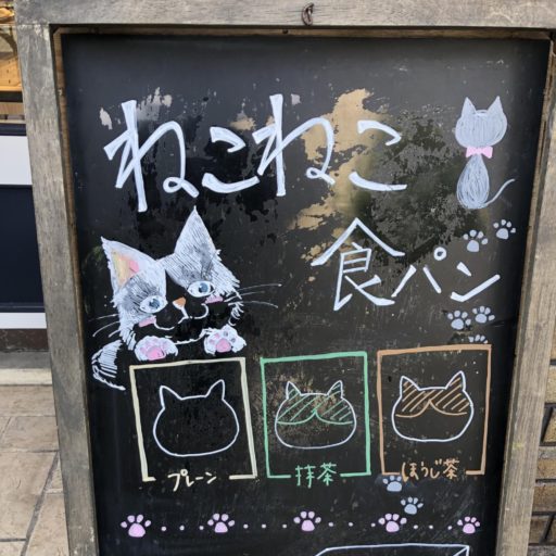 ねこねこパン屋の食パンは看板写真だけの紹介。いつか買ってみたい。