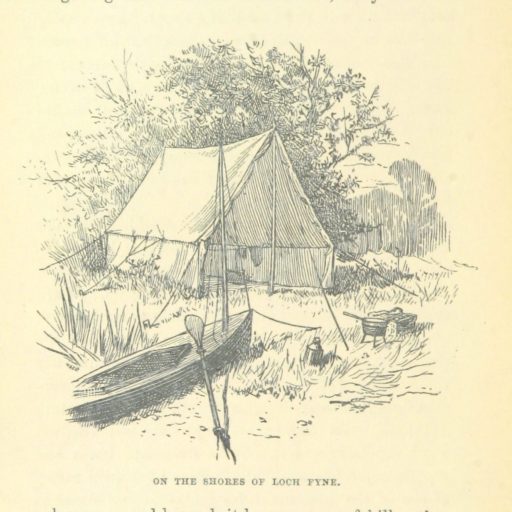 ホールディングは様々なキャンプ旅の方法論を網羅的に記したThe Camper’s Handbookを1908年に出しているが、同様の主題を扱った著書としてはまず1886年のWatery Wanderings ‘mid Western Lochs(スコットランド西部の湖をめぐる水上放浪記)、そして1898年のCycle and Camp(アイルランド自転車キャンプ行)がある。彼はキャンプ泊による個人旅行のノウハウをカヌーで蓄積し、後にそれを自転車に応用したようだ。