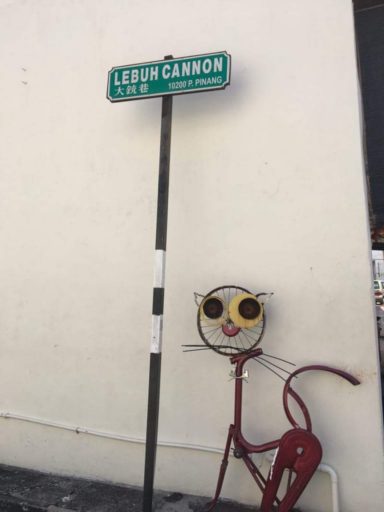おまけは、自転車でできた猫。ペナンの有名なストリートアートの一つ。動物保護を目的に描かれたアートに猫がモチーフになったものが多い。