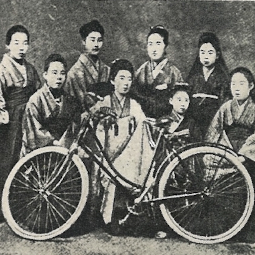 三浦環の自伝には、当時自転車に乗っていたのは彼女の他、後に女性初の小学校校長、参議院議員となった木内キヤウ(1884-1964)だったと記されている。同自伝には、新聞に取材されてからは見物や付け文をする学生が後を絶たなかったこと、そうかと思えば「女のくせに生意気だ、闇の夜を気をつけろ」という脅し文句を袂に投げ入れた学生や、通せんぼして環を困らせた二歳年下の餓鬼大将、山田耕筰らのエピソードが残されている(三浦環『お蝶夫人』青空文庫、二二 自転車美人のころ)。海老茶の袴姿に自転車というハイカラな出で立ちは、『読売新聞』に連載された小杉天外の小説『魔風恋風』(1903年2月-9月)の主人公のモデルにもなり、一世を風靡したという。ちなみに、この小説の主人公は帝大生と恋に落ちる堕落した女性として描かれるが、環の通学といえば、芝区西久保桜川町(現・港区虎ノ門一丁目)の自宅から上野まで、約8.5kmの道のり。車種は定かではないが、英国製の赤い自転車。言うまでもなく、当時の自転車は高級品だが、ブレーキなし、固定ギアでの坂道や悪路の走行には、芯の強さが垣間見えるのだ。