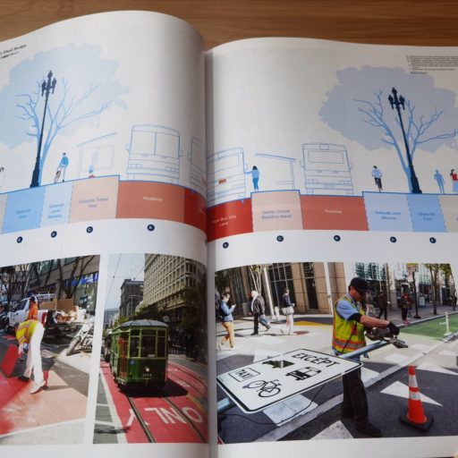 続く5つのセクションでは、サン・フランシスコ、ニューヨーク、チューリッヒ、そして東京の4都市について5つの建築事務所による取り組みを取り上げる。それぞれ都市の歴史や文化的な背景を紹介し、現状の分析を踏まえて実施または調査されている自転車による都市計画を提示する。それは個別の建築だけではなく、人と自転車を含めた相互に関連する有機的な集合体であることが分かる。