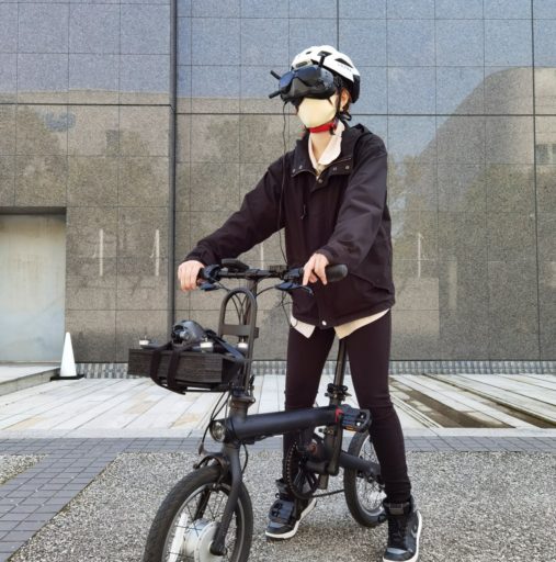 DJIの新しいドローンFPVを使って自転車に乗る。と書くと意味不明だが、要はドローンの機体を自転車の前部に取り付け、そのカメラからの映像をゴーグルで見ることだ。そうすれば、他の人が乗る自転車に乗る体験ができると考えた。言い換えると、これは自分の目を自転車に取り付けることであり、視覚としての幽体離脱、あるいは自転車への憑依かもしれない。