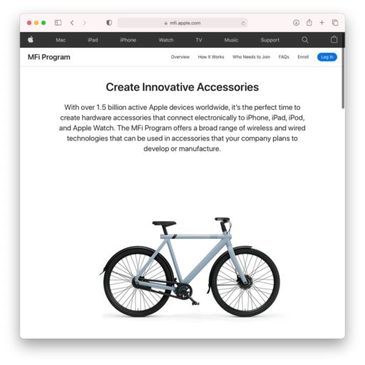 さらに重要なのは、AirTagに先立つこと2週間前の4月7日に発表されたFind My network accessory programだ。これによってApple以外のサード・パーティがFind My機能を利用可能になった。同時に発表された対応製品が3つあり、タグやイヤフォンは妥当だが、もうひとつがVanMoofの電動アシスト自転車だったのは驚かされた。しかも、その日から対応した自転車を注文できるという。