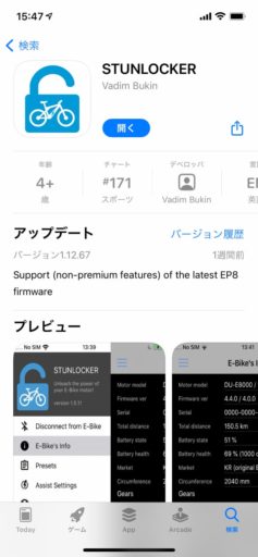 STUnlockerには、iOSおよびAndroidでBluetooth接続するモバイル・アプリと、PCでUSBインターフェース(SM-PCE02など)を用いるデスクトップ・アプリとがある。筆者はBluetooth対応のサイクル・コンピュータSC-E8000を使っているので、iOS版を120円で購入した。なお、電動アシスト・ユニットの種類やファームウェアのバージョン、そして後述するライセンスによる違いをマニュアルで確認しておこう。