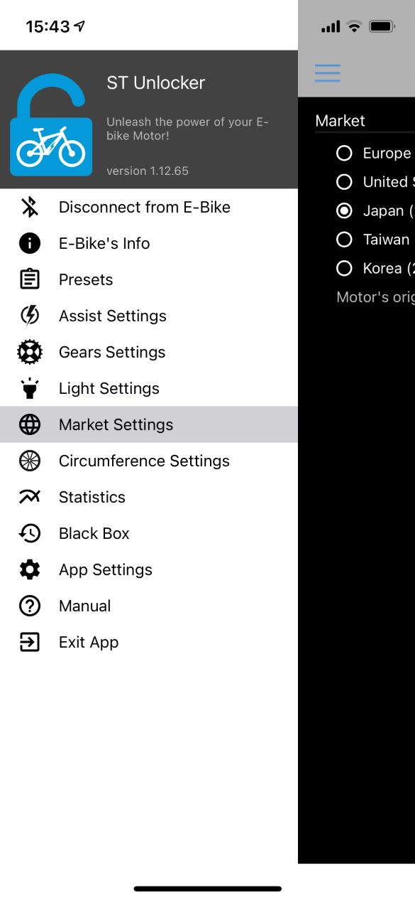 通常のiOS版で大半の操作ができるが、プレミアム・ライセンスを€30(税込4,463円)で購入すれば設定可能な項目が増える。例えば、Market Settingsは電動アシスト・ユニットを販売する国や地域の設定で、法規制による最大アシスト速度を設定する。これをUSにすれば最大アシスト速度が32km/hとなり、日本のような特異なアシスト率ではなくなるのだろう。