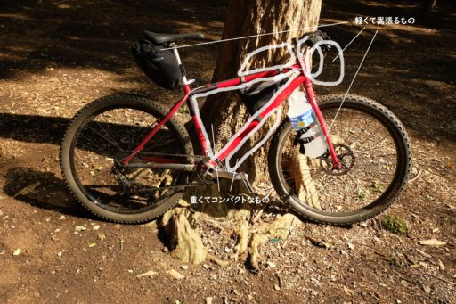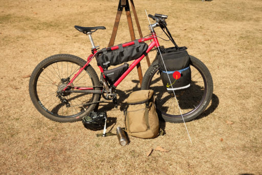 前回の記事では「前荷ism」という言葉をでっちあげて自転車の前方への積載とジオメトリーとの関係を掘り下げたが、一口に「前荷」と言ってもどこにどう積むかで違いが出るということも見えてきた。今回はフォーク積載に注目し、野営あり&未舗装ありのツーリング≒バイクパッキング向けセットアップを検討する。