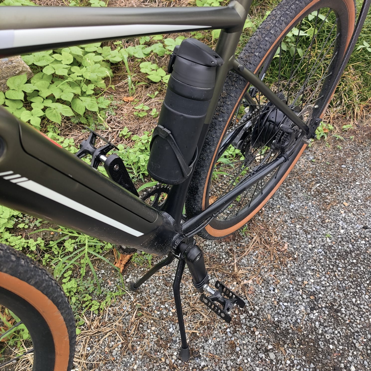 少し長い距離のライドとなると水分補給が欠かせない。特に夏の暑い日には汗が吹き出し、体中の水分が失われ、喉が乾く。そこでボトル・ケージを取り付けてドリンク・ボトルを差し込めるようにする。JG1はトップ・チューブとの間隔が狭めなので、横からの出し入れがしやすいEliteのケージCannival XCにした。保冷・保温ボトルに冷たい真水を入れ、汗で失われる塩分は錠剤などで補給するのが好みだ。