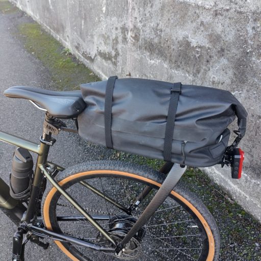 フロントおよびリアのライトは、以前から使っているサイクル・レコーダー兼用ライトを流用している。いずれもGoPro互換の取り付け機構であり、フロントはGarminマウンタの下部に、リアは後述するリアバッグの下部に取り付けた。この時、JG1付属のサイクル・コンピュータからUSBで給電できるのが素晴らしい。ライトだけでなく、GoProを取り付けて長時間の録画に利用しても良いだろう。