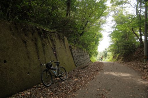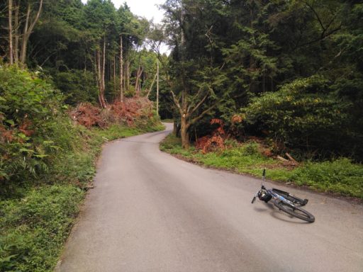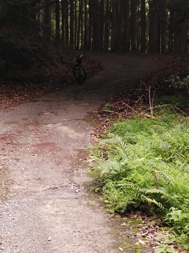 少し古いシングルスピードのリジッドMTBで、踏めないほどの斜度はない道を黙々と、キリのいいところで休みつつ登る。休んでいるところへ寄ってくるアブを手拭いで追い払う。尾根の近くは風が涼しい。