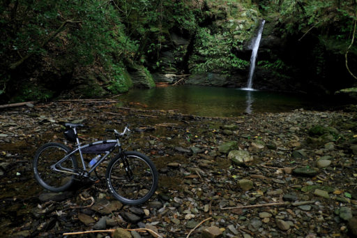 しばらく沢が平行し、小さな滝へ出る。そこを過ぎるとため池がある。いったん里に抜けたところで雨がパラつき、同行していた親戚のMは独り撤収することに。だが自販機の前でおにぎりを食べているとMが戻って来た。やっぱり最後までやる気になった、と。