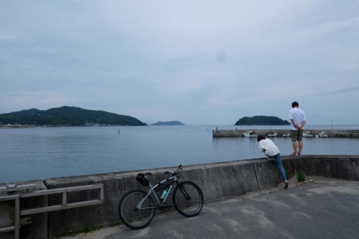 まだ明るい海沿いを、Mとの待ち合わせ場所へ。登れるギア比のシングルは、平坦路ではすぐ脚が回り切り尻と腕にくる。