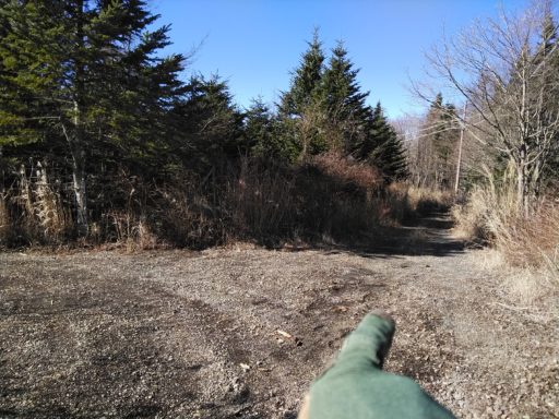 最大の問題はルートではなかった。そんなこんなで押したり担いだりちょっと乗ったりしていたら、後輪のフリーが故障し回らなくなったのだ(隣のノッチに移動しない、ほぼ固定状態になった)。これだと脚を止めるとチェーンが落ちてしまう。チェーンを切り詰めディレイラーを通さず張って固定化することも考えたが、それは最後の手段とし、その辺に落ちていた太めの枝でスプロケットをどついてみた。何度目かでギギギと音を立ててフリーが渋いながら動くようになった。この状態で再スタート、県道へのエスケープを決定。